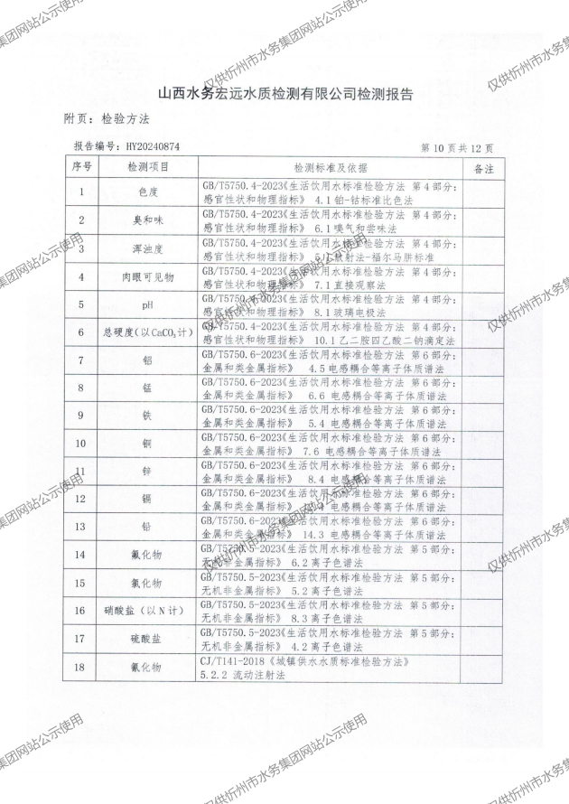 忻州城區(qū)公共供水水源水、出廠水、管網(wǎng)水、管網(wǎng)末梢水2024年11月份水質(zhì)信息公示