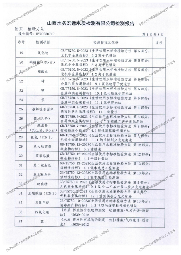忻州城區(qū)公共供水水源水、出廠水、管網水、管網末梢水2025年8月份水質信息公示