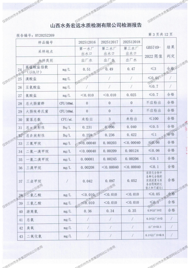 2025年忻州城區(qū)公共供水南水廠、三水廠、云中水廠出廠水97項(xiàng)水質(zhì)全分析