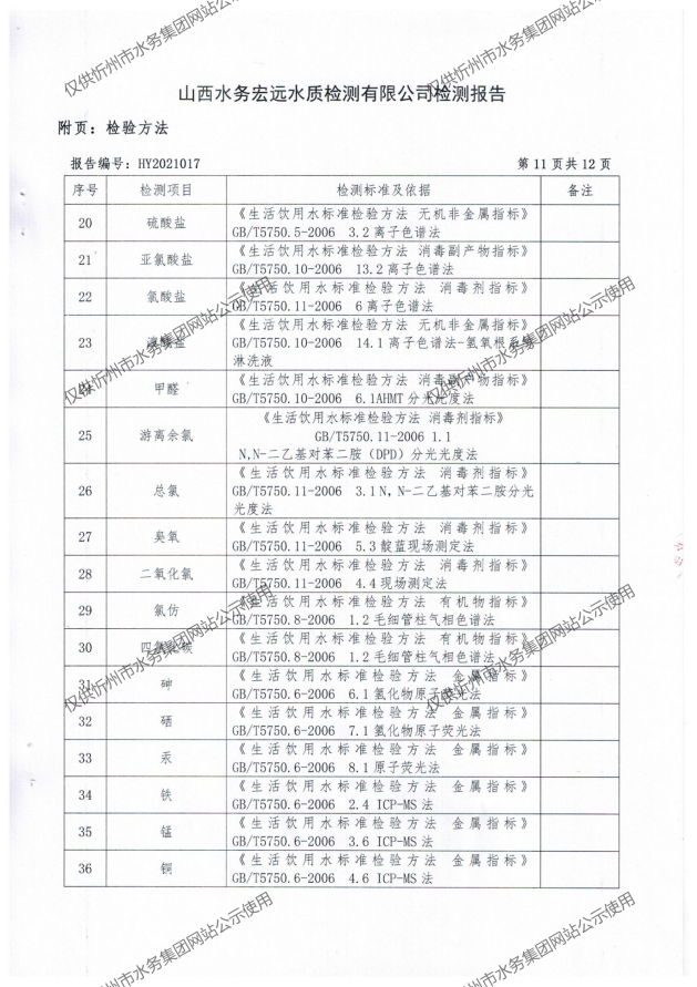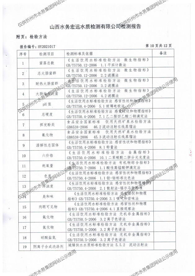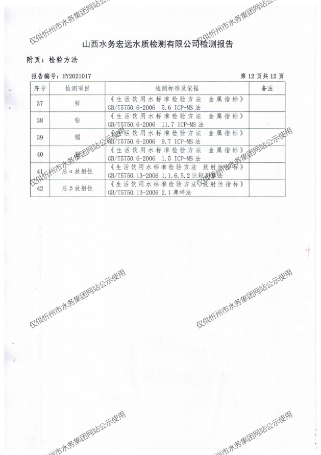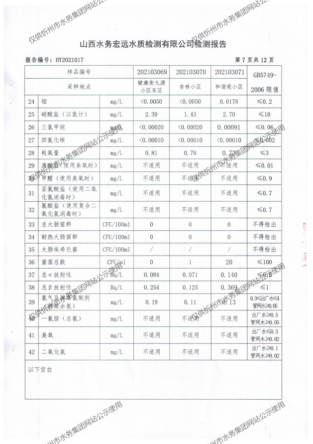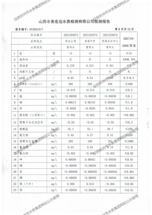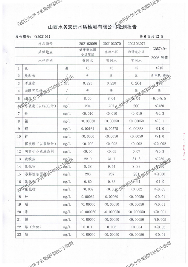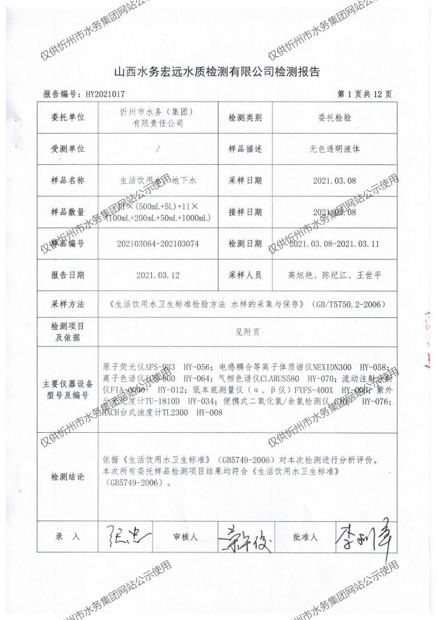 忻州城區(qū)公共供水水源水、出廠水、管網水、管網末梢水2021年3月份水質信息公示